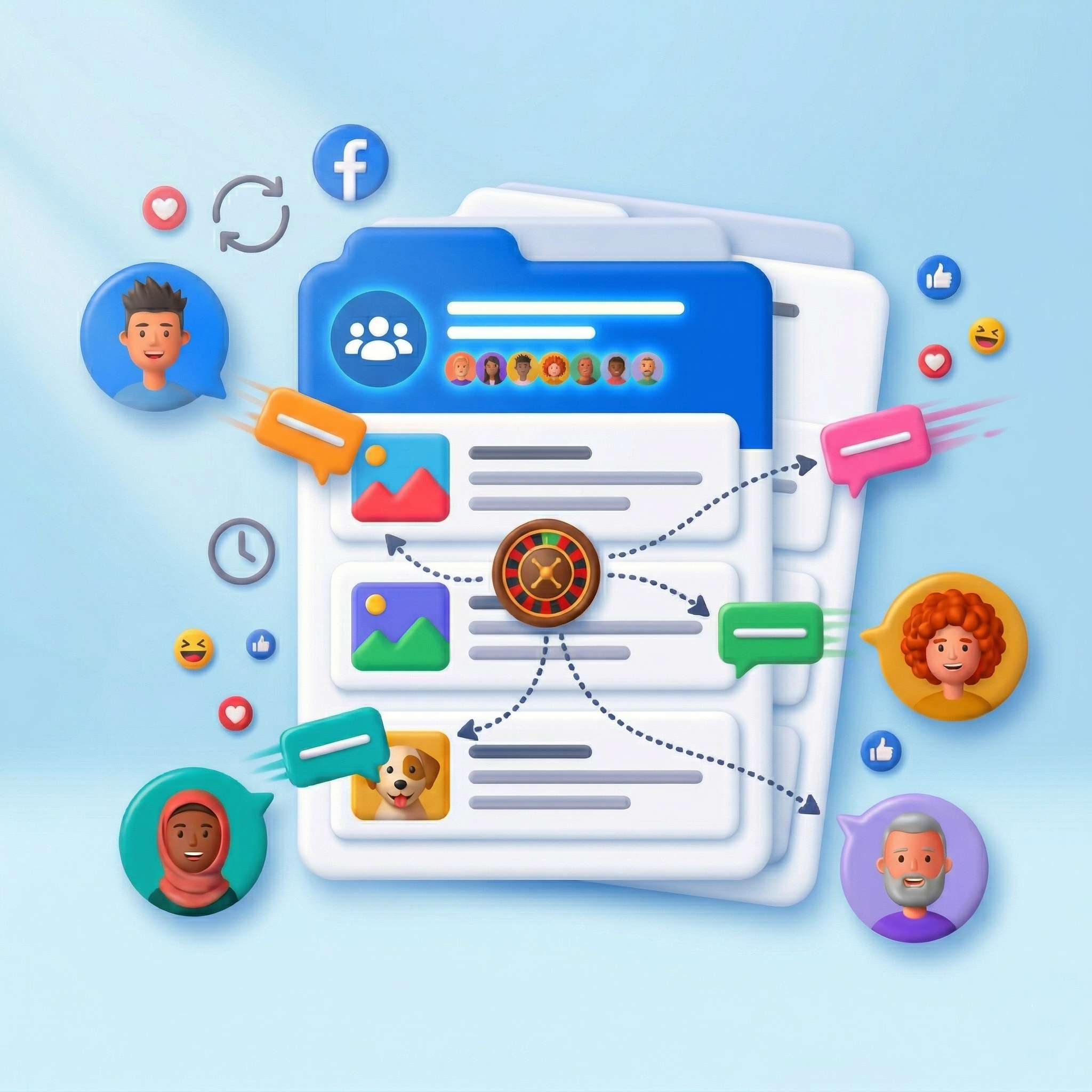 Tự động vào danh sách Groups đã nhập, chọn ngẫu nhiên số bài trong khoảng cấu hình và để lại bình luận theo danh sách nội dung (random), kèm thời gian delay ngẫu nhiên giữa các lần comment.